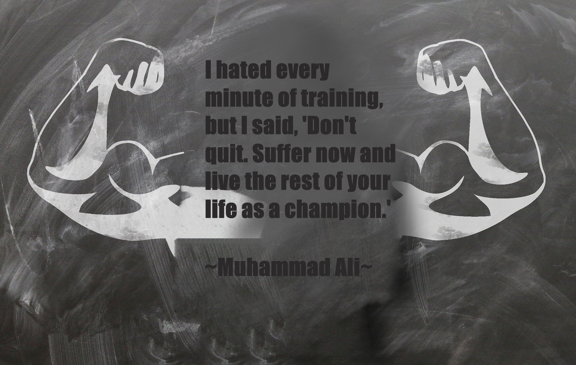 Muhammad Ali, a World Champion boxer, who was also a philanthropist and activist, put up a good fight. His quote, “I hated every minute of training, but I said, ‘Don’t quit. Suffer now and live the rest of your life as a champion”, really speaks to me in regards to life.